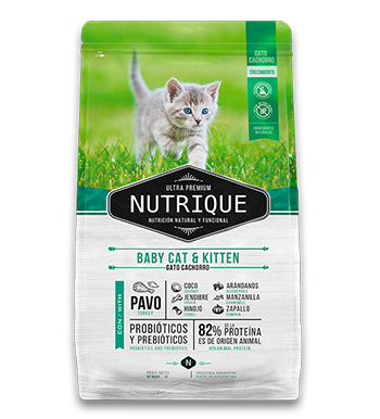 info Nutrique Baby Cat & Kitten Gato cachorro desde el destete hasta el año de edad. (82% proteína origen animal). 60% pavo 10% huevo 12% cerdo NUTRIQUE Cod: 3093 NUTRIQUE CAT BABY Y KITTEN 2 KG 370037 - Copiar Nombre Stock Stock CE = 6 TAB = 13 = 0 = 0